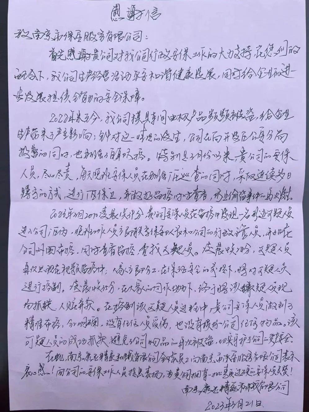 公司領(lǐng)導(dǎo)表示,保安員僅僅是做了分內(nèi)工作就得到康尼集團如此高規(guī)格的表彰,我們深受鼓舞,感謝康尼集團對我司的信任和支持,讓我們沒有理由不把本職工作做好。公司6名保安員從發(fā)現(xiàn)可疑目標(biāo)到精心布控再到奮不顧身勇擒竊賊,體現(xiàn)了南京市保人頑強的工作作風(fēng)。為鼓勵先進、樹立典型,在全體員工中營造堅守初心、愛崗敬業(yè)、履職盡責(zé)的濃厚氛圍,公司將予以表彰獎勵。希望全體員工能夠繼續(xù)秉承“服務(wù)無極限、安全到永遠(yuǎn)”的服務(wù)理念為保障客戶單位的平安做出自己的貢獻(xiàn)。