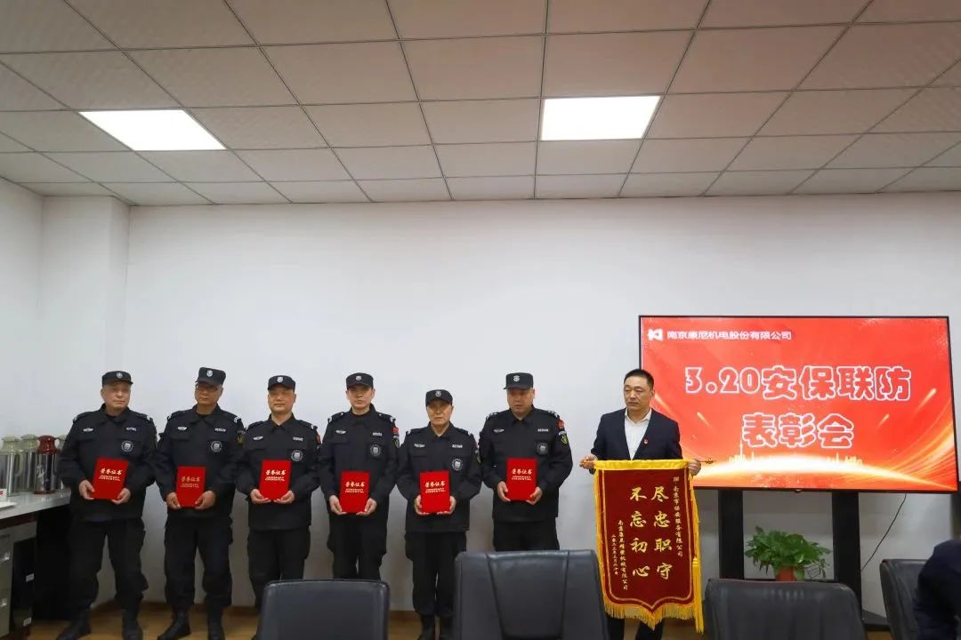 “愛崗敬業(yè)、智勇雙全……南京保安好樣的!”3月29日,南京市保安服務(wù)有限公司駐康尼機電股份有限公司保安員魏健、王俊東、胡國旗、袁書進、陳邦春、李雷因勇擒竊賊受到了客戶單位的表彰,康尼集團各分公司綜合管理部及各外包服務(wù)公司負(fù)責(zé)人參加會議,南京市保安服務(wù)有限公司黨支部書記、分管該項目的副總經(jīng)理及項目所屬部門負(fù)責(zé)人應(yīng)邀參加表彰會。